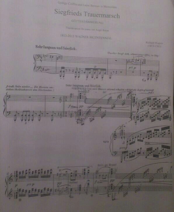 Tras eso, sonará la música de la marcha fúnebre de Sigfrido, uno de los momentos más potentes de toda la Historia de la música en el que el cadáver del héroe es llevado en procesión fúnebre y que acerca el final de la Tetralogía y la caída final de los dioses. Pero en esta ocasión, la marcha fúnebre va por las numerosas víctimas de la wagneridad profunda: Franz Liszt, Minna Planer, Luis II, Friedrich Nietzsche, Hugo Wolf, Johannes Brahms, Hans von Bülow, Carl Tausig, Franz Putzi, Richard Kleinmichel, Karl Klindworth, Thomas Mann, Joseph Rubinstein, Hector Berlioz, Frederic Chopin, Albert Schweitzer, Paco Porras, Siegfried Wagner, Jacques Offenbach, Gabriel Fauré, Georges Bizet, Ditta von Tesse, John Lennon, Arnold Schönberg, Piotr Ilich Tchaikovsky, Max Reger, Fritz Lang, Isolde von Bülow, Otto Wesendonck, Nicolás II, Hans y Sophie Scholl, August Stradal, Bakunin, Albert Einstein, Felix Mottl, Wieland Wagner, Lucchino Visconti, Alexander von Zemlinsky, Camille Chevillard, Giuseppe Verdi, Ervin Nyiregyhazi, Groucho Marx, Ferruccio Busoni, Eva von Bülow, Hermann Zumpe, Louis Brassin, Isadora Duncan, Anton Webern, Hans Pfitzner, Felipe Pedrell, Karl Straube, Woody Allen, Conrado del Campo, Pierre Boulez y un largo etcétera de almas zombificadas que perdieron la autonomía de la voluntad por tomarse demasiado en serio la wagneridad total.